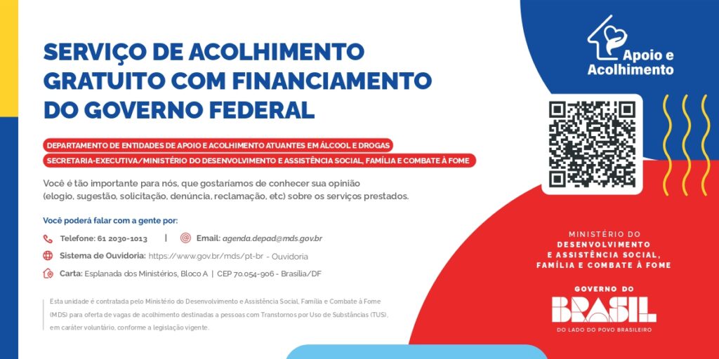 A Comunidade Terapêutica Fazenda da Solidariedade informa que, por meio do Departamento de Entidades de Apoio e Acolhimento Atuantes em Álcool e Drogas (MDS/SE/DEPAD), conta com o financiamento de 19 (dezenove) vagas de acolhimento destinadas ao atendimento de pessoas em situação de vulnerabilidade decorrente do uso de álcool e outras drogas.